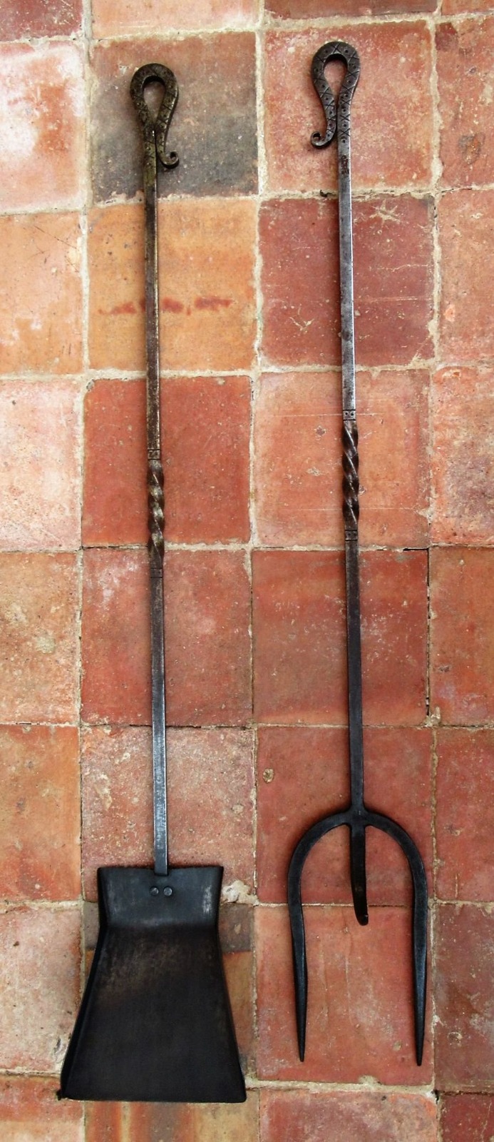 Pair of Large Arts & Crafts Cotswold School Wrought Iron Fire Irons