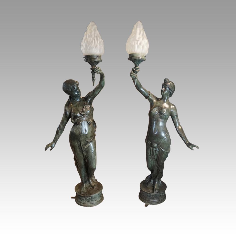 Pair of Large Bronze Lanterns of Maidens (1 of 11)