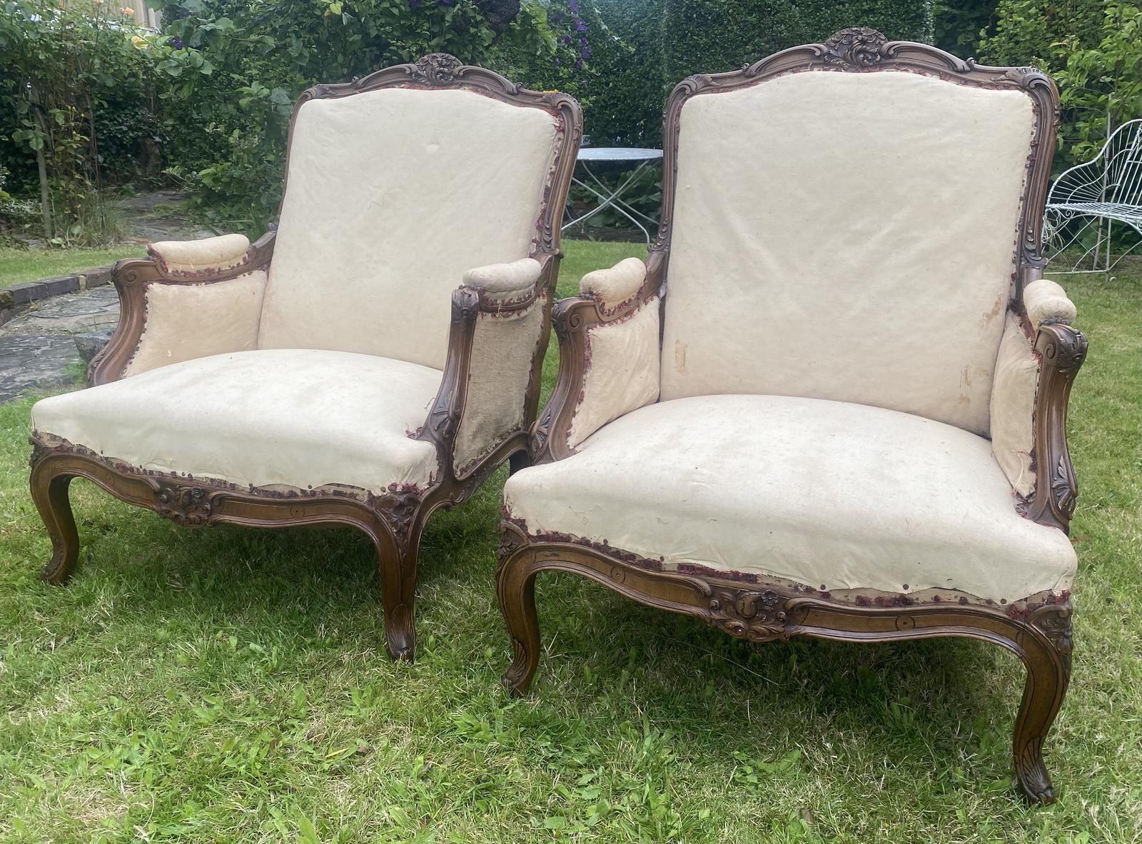 Pair of Large Carved Walnut Armchairs