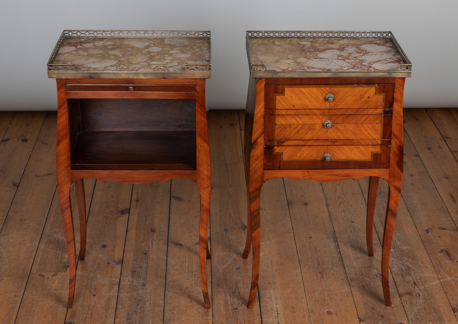 Pair of Large French Fruitwood Inlaid Bedside Tables c.1900
