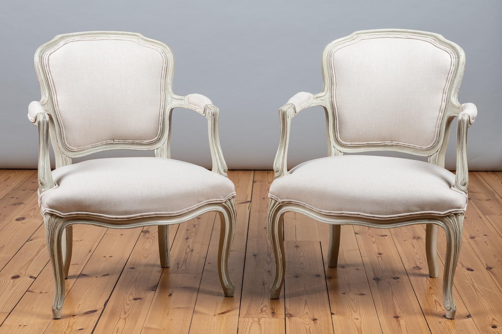 Pair of Large French Louis XV Style Painted Upholstered Armchairs (1 of 9)
