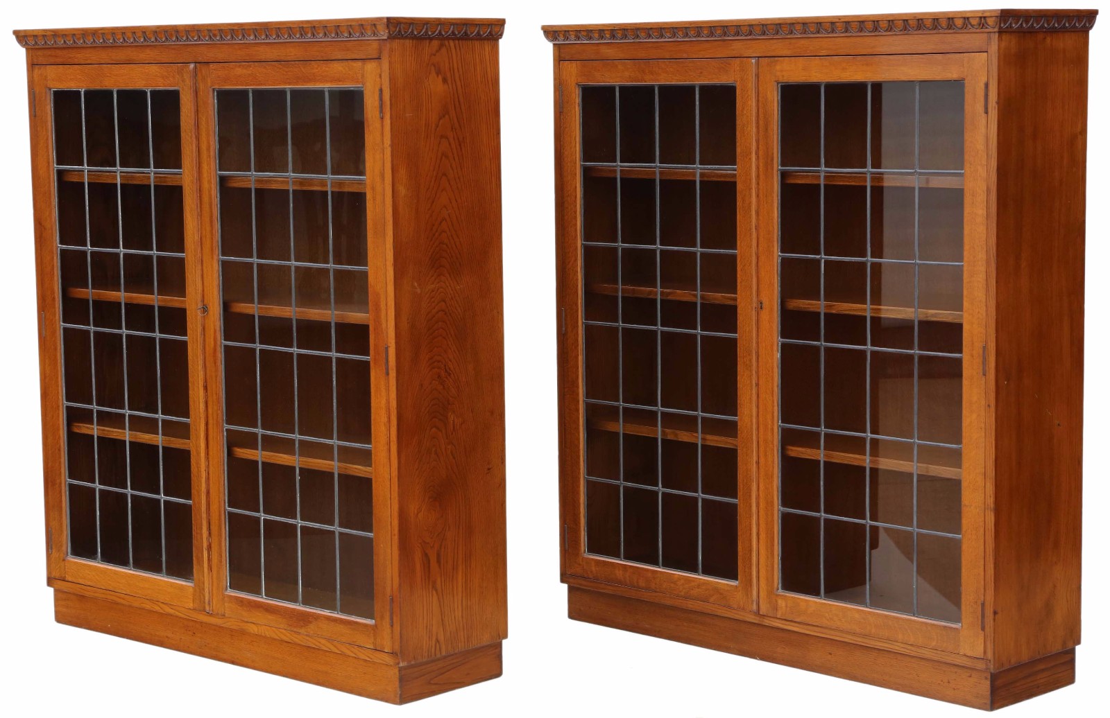 Pair of large glazed oak bookcases/display cabinets C1930 (1 of 1)