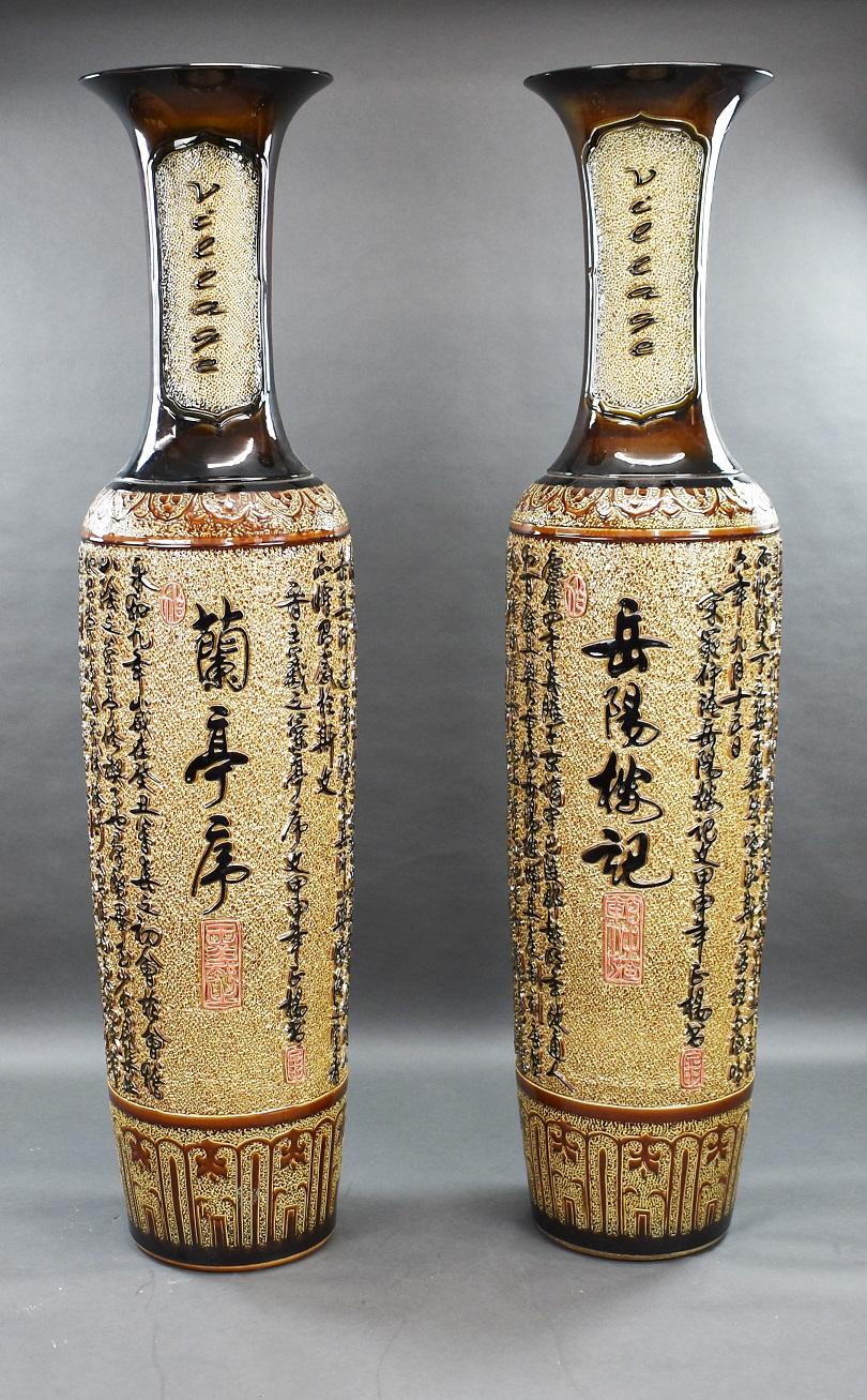 Pair of Large Impressive Floor Standing Chinese Vases