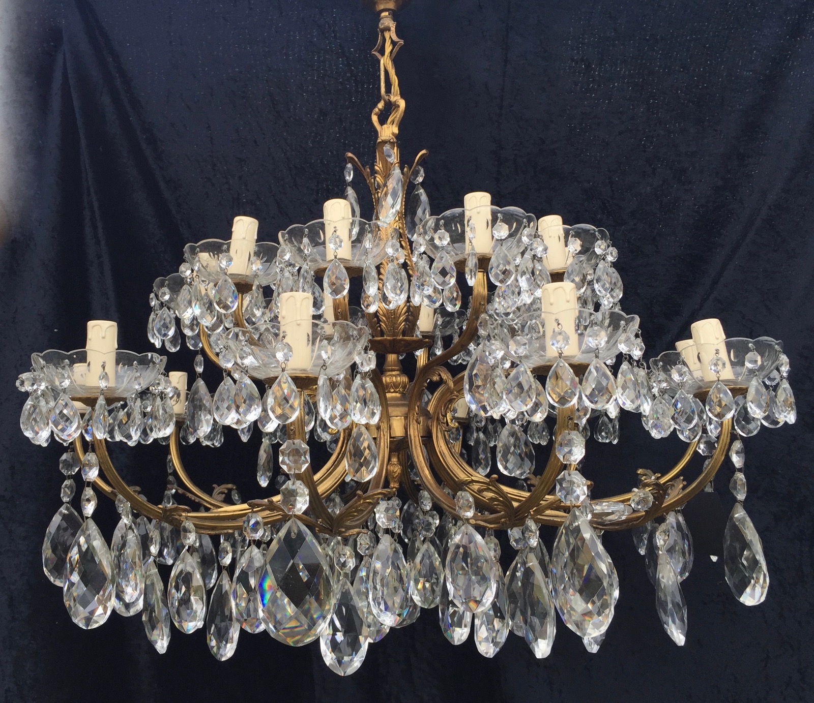 Pair of Large Italian Brass & Crystal Chandeliers C.1900