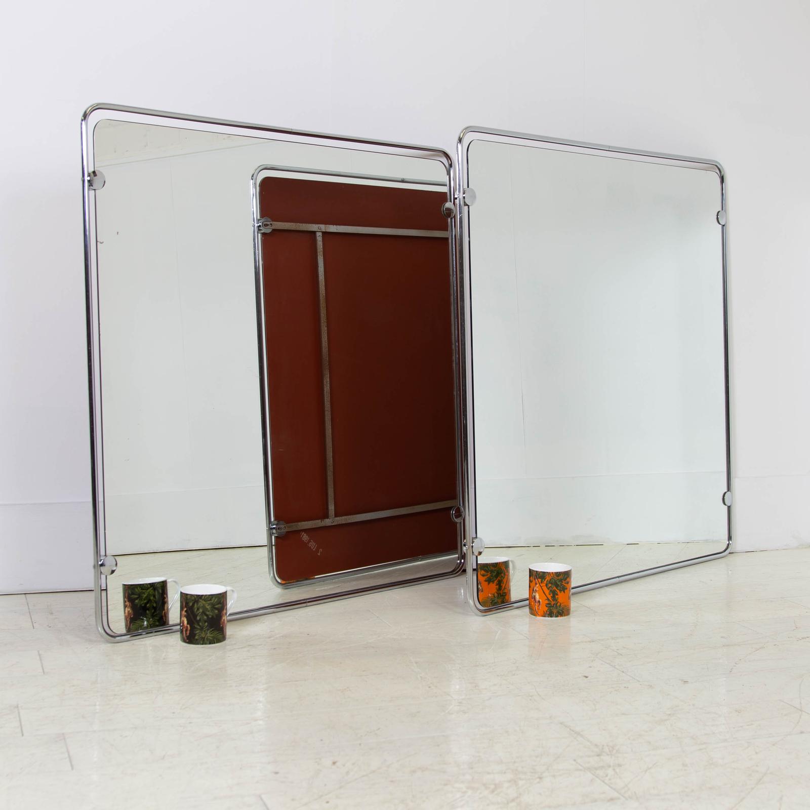 Pair of Large Italian Mid Century Polished Steel Mirrors (1 of 12)