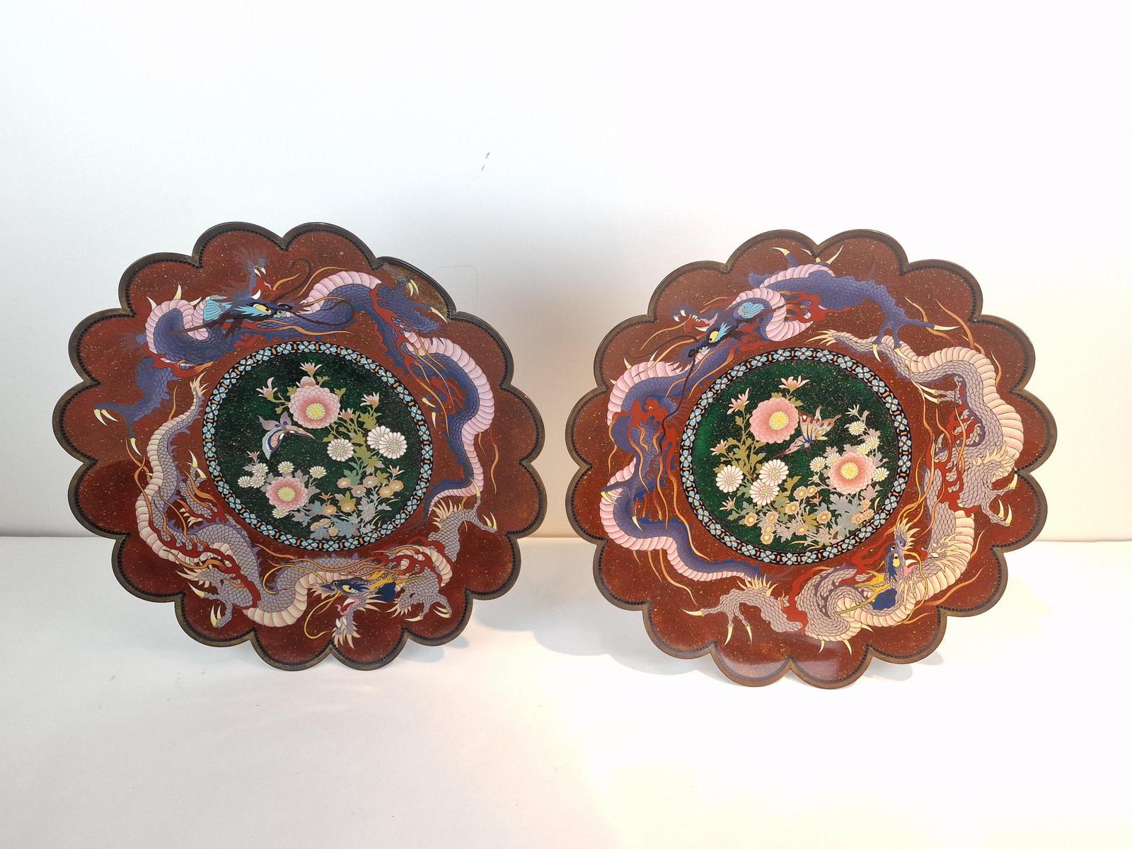 Pair of Large Japanese Cloisonne Chargers Meiji Period (1 of 15)