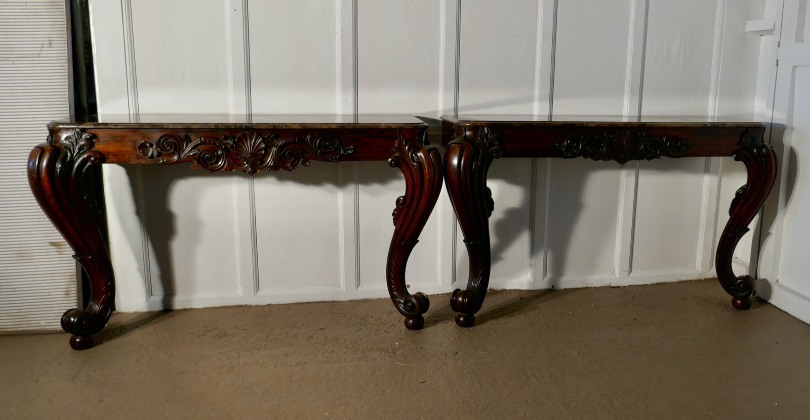 Pair of Large Mahogany Marble Top Console Tables