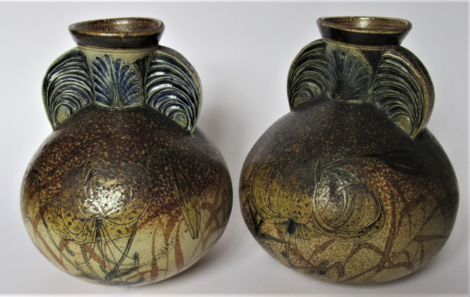 Pair of Large Martin Brothers Stoneware Vases, 1883