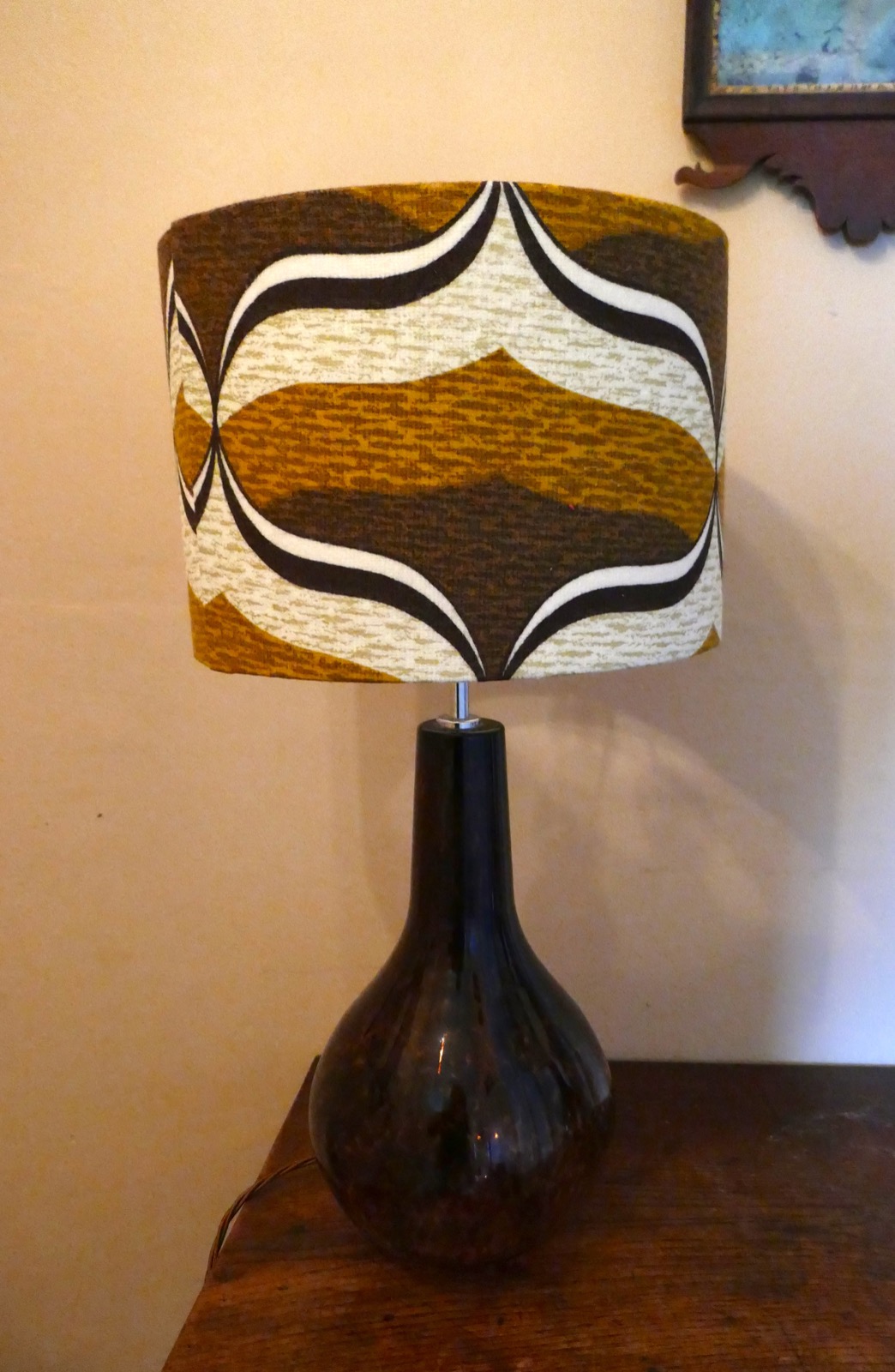 Pair of Large Mid Century Modern Splatter Glass Lamps with Retro Lamp Shades
