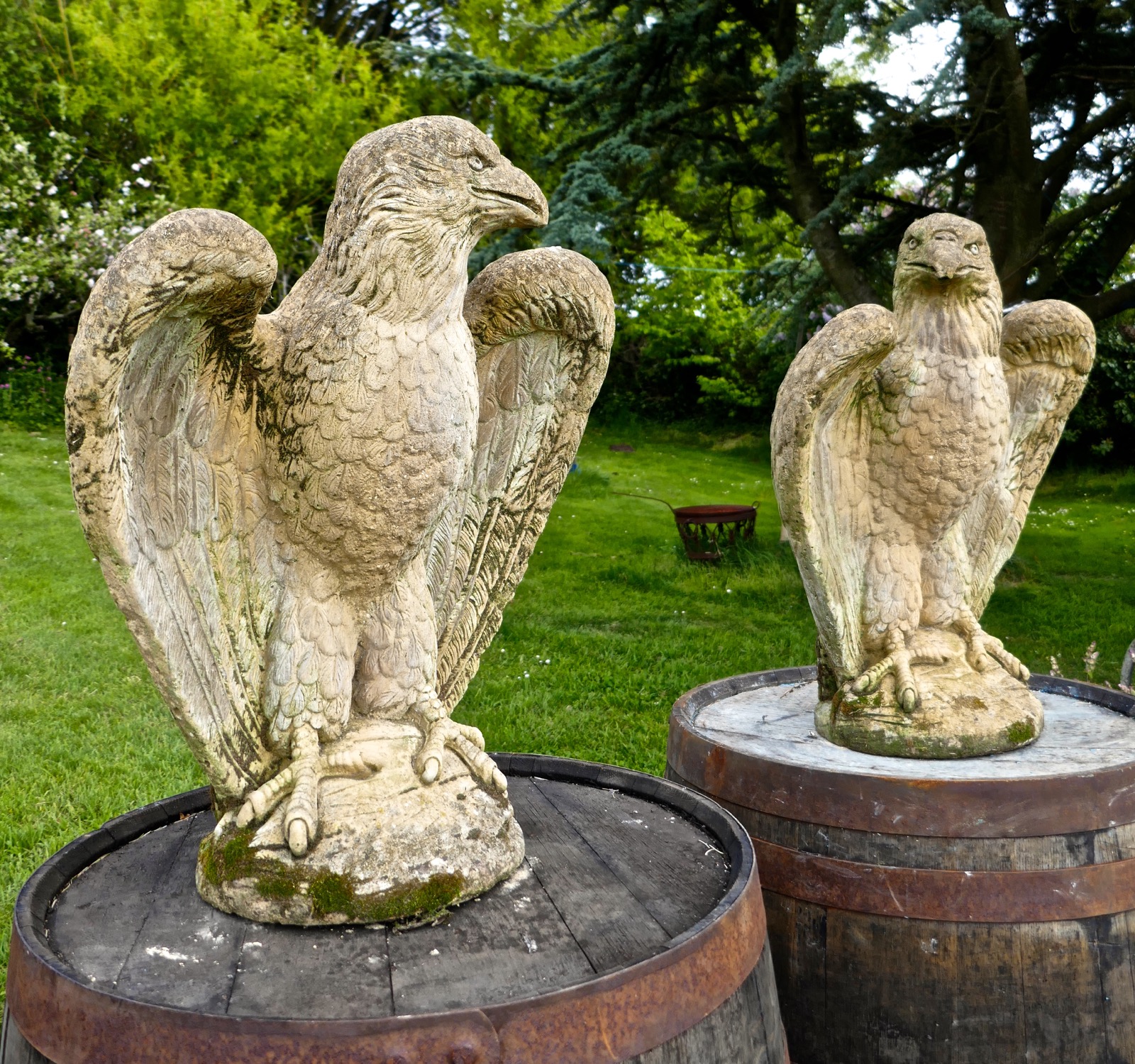 Pair of Large Old Weathered Eagle Statues or Pillar Caps