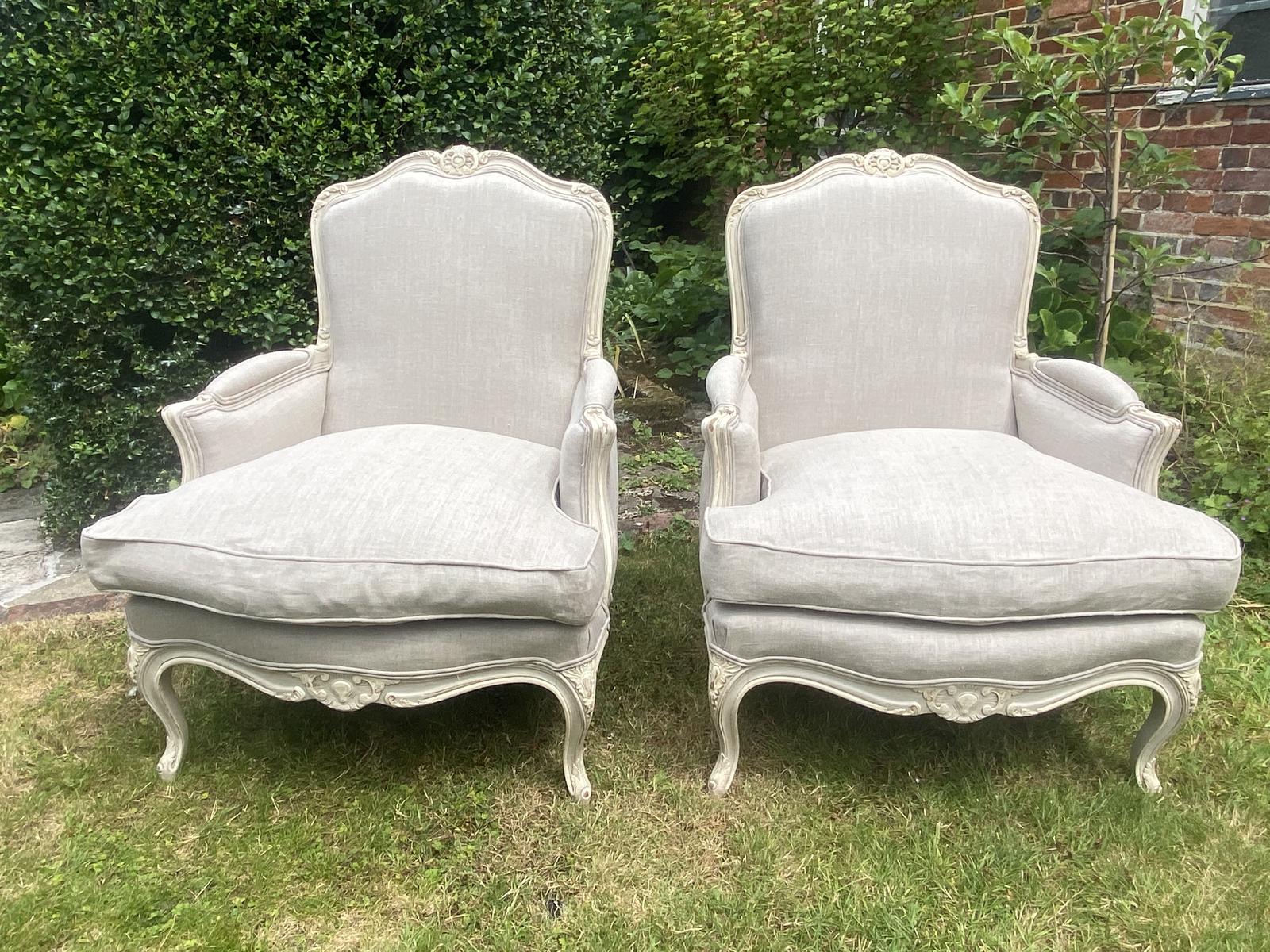 Pair of Large Painted Bergere Armchairs in Linen (1 of 6)