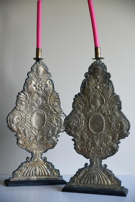 Pair of Large Pressed Metal Candle Holders