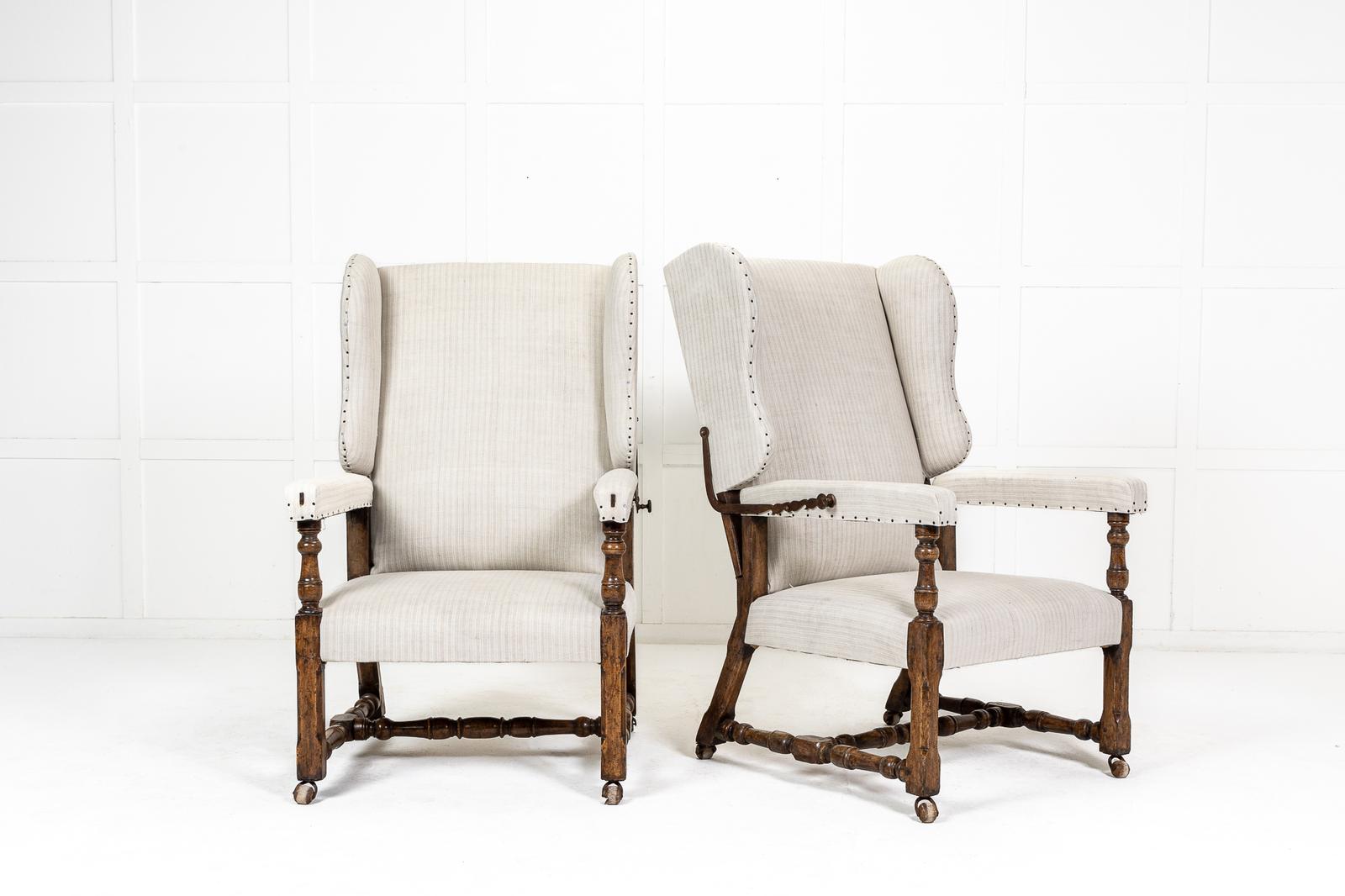 Pair of Large Scale French Reclining Wing Chairs