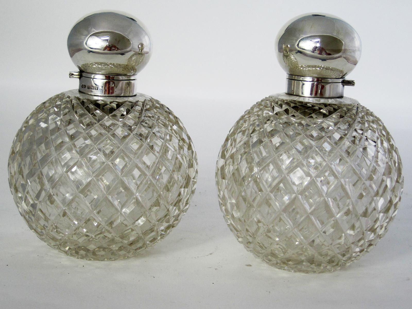 Pair of Large Silver Top Perfume Bottles with Plain Circular Hinged Tops (1 of 6)