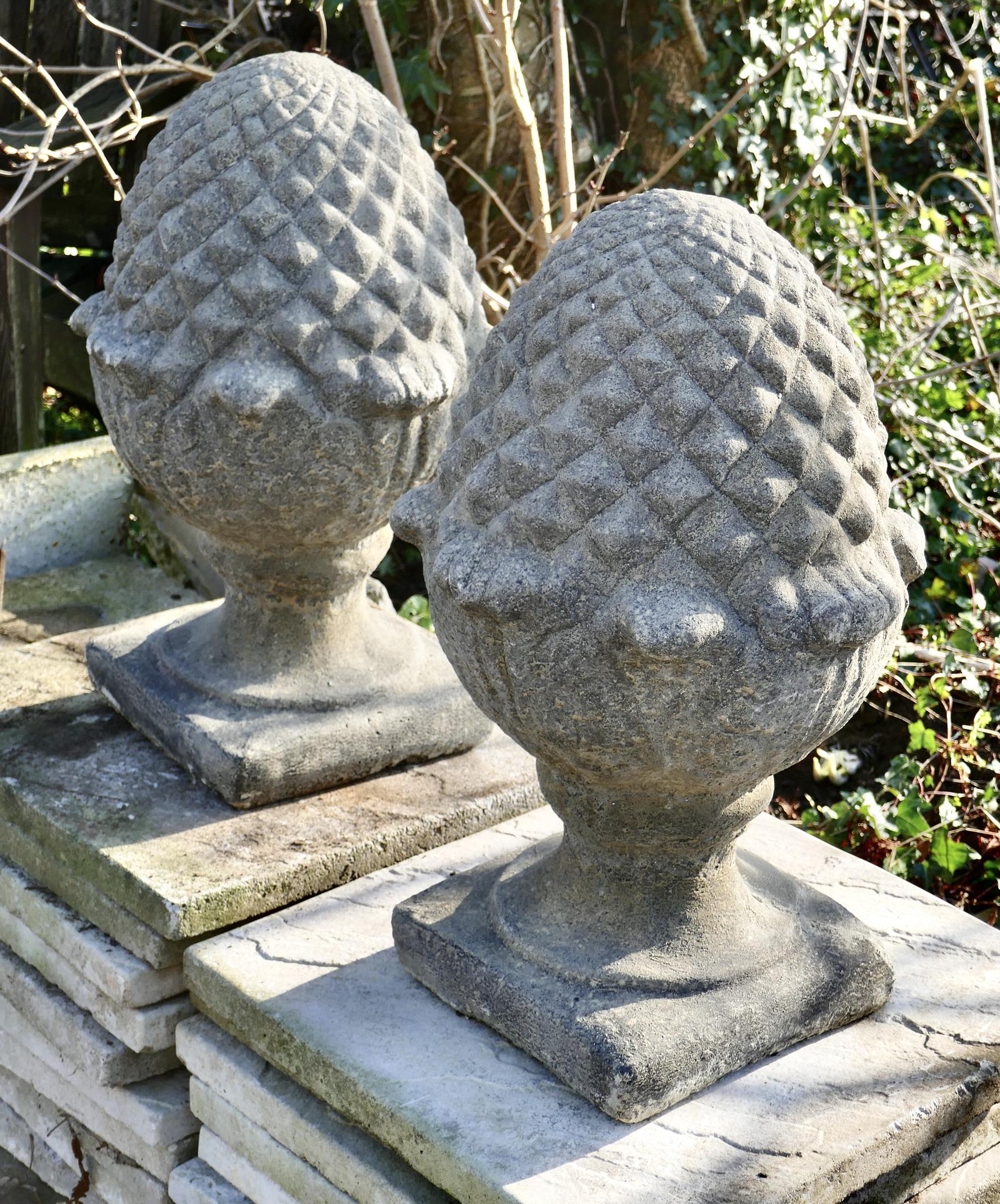Pair of Large Stone Pine Cone Pineapple Finials Sculptures