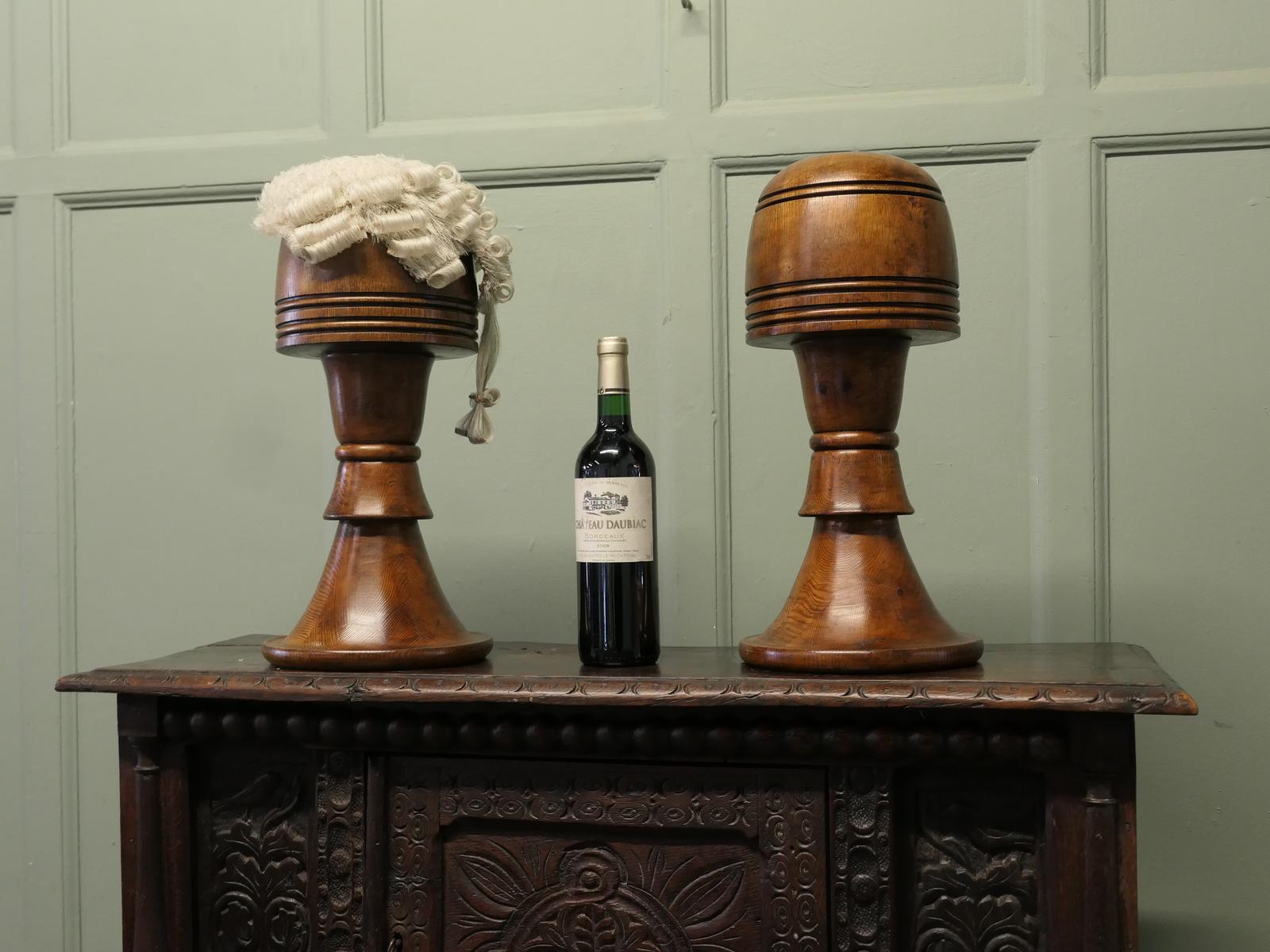 This Pair of Large Turned Oak Wig Stands / Shop Display Hats is located in United Kingdom