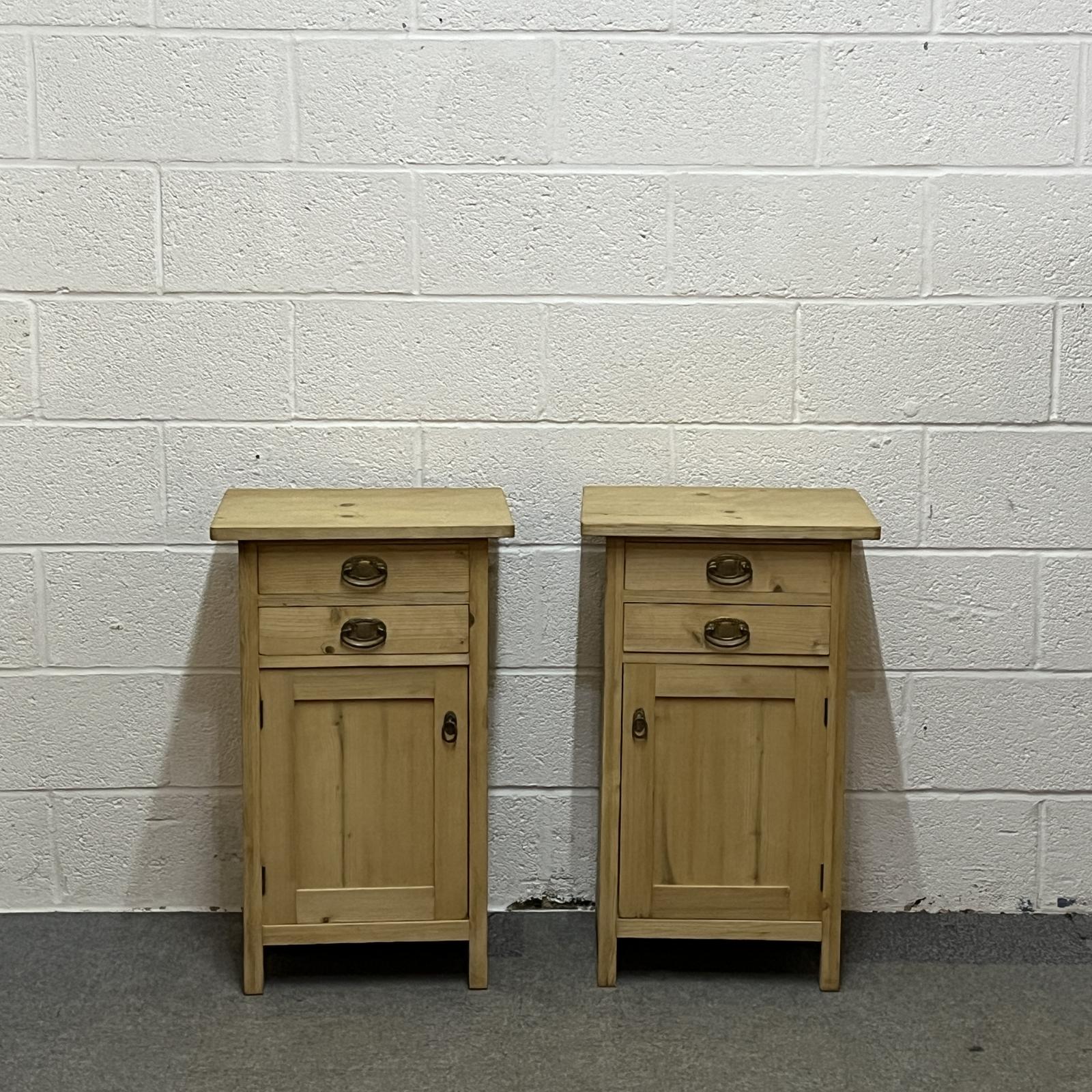 Pair of Large Twin Drawer Antique Pine Bedside Cupboards