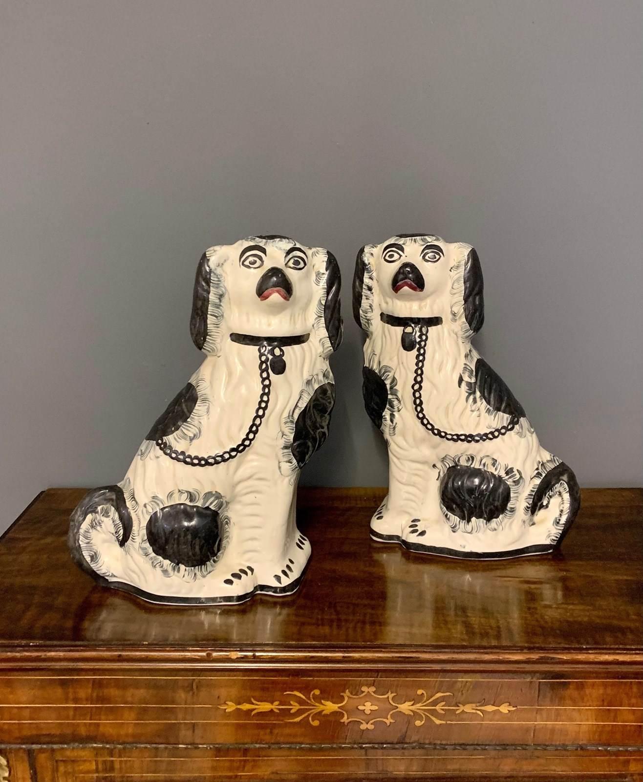 Pair of Large Victorian Black & White Staffordshire Spaniels
