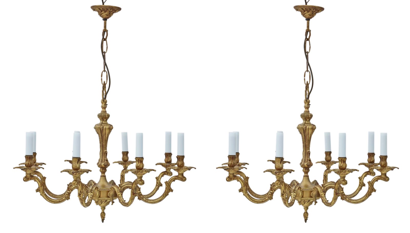 Pair of Large Vintage 8 Lamp Arm Brass Ormolu Chandeliers (1 of 1)