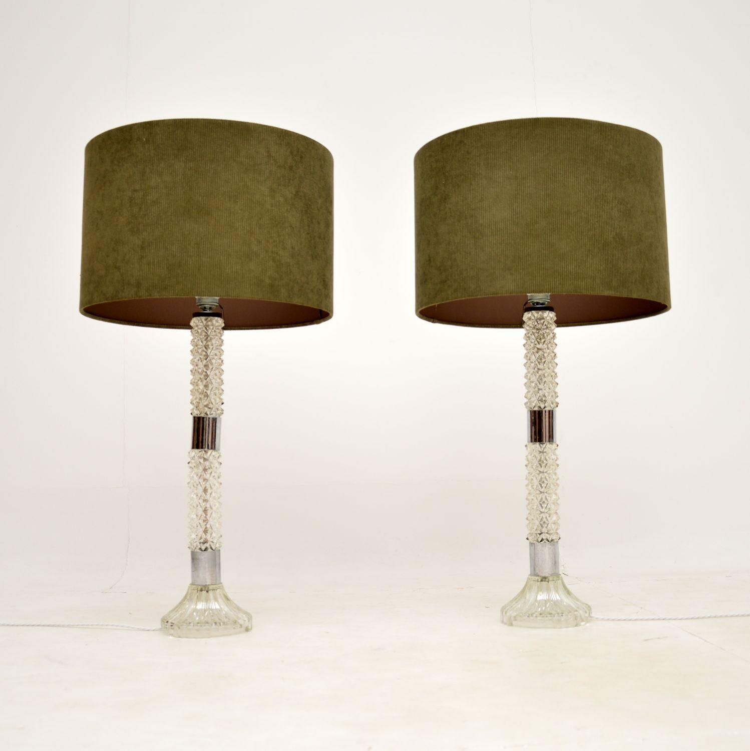 Pair of Large Vintage Glass & Chrome Table Lamps