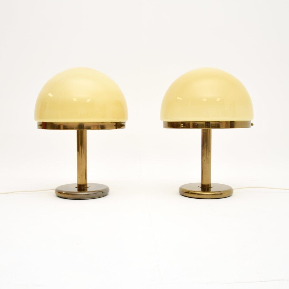 Pair of Large Vintage Italian Brass & Glass Table Lamps
