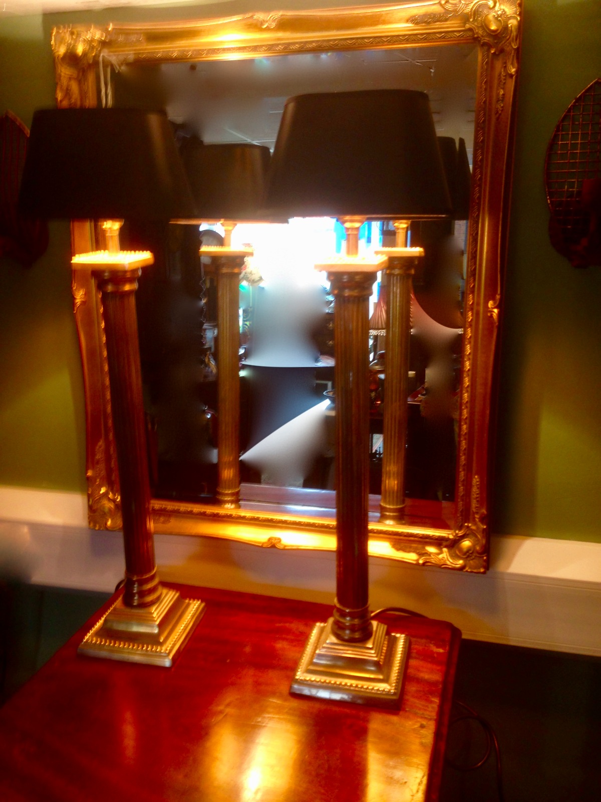 Pair of Late 19th Century Brass Corinthian Column Table Lamps c.1890