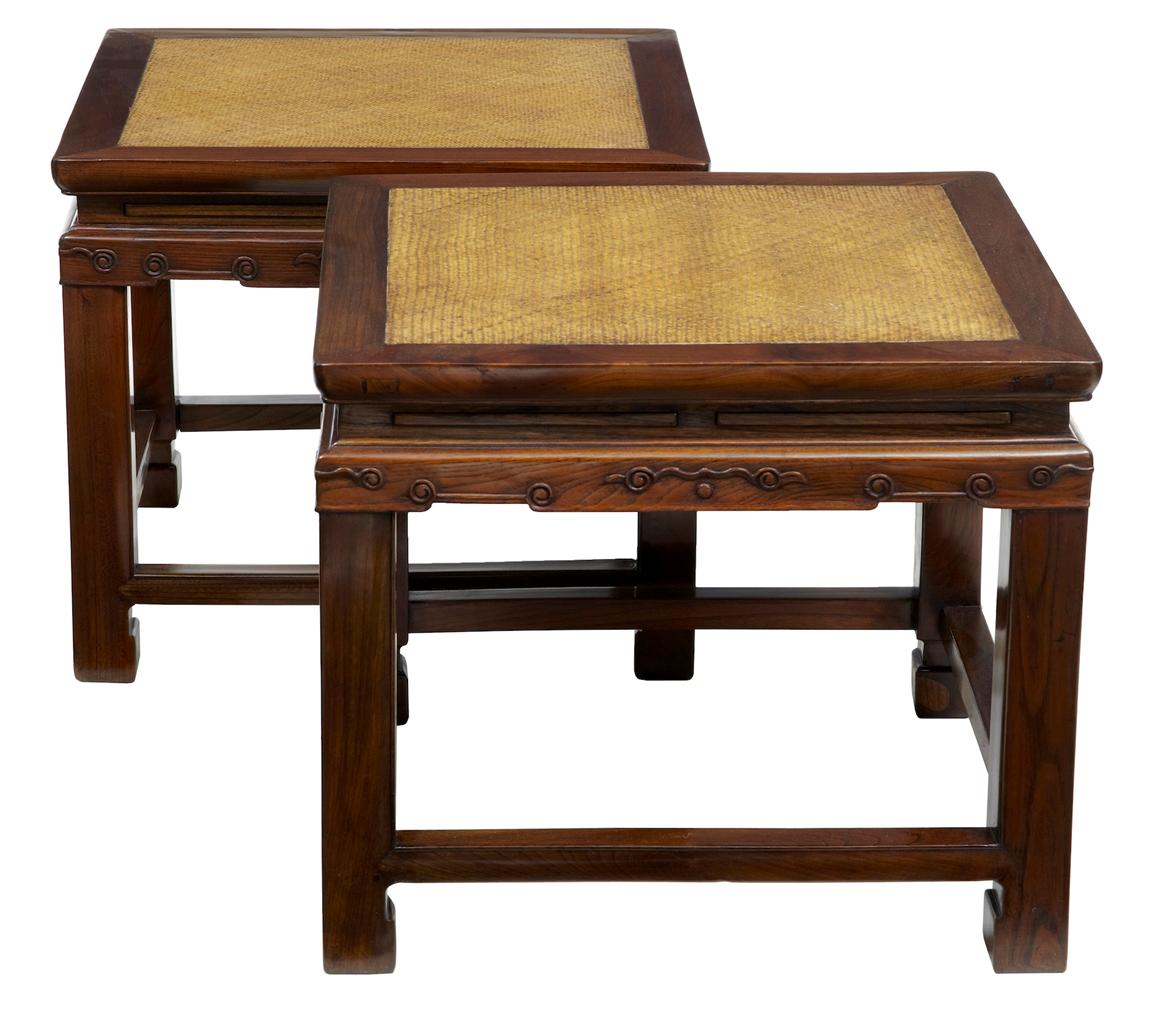 Pair of Late 19th Century Chinese Carved Hardwood Cane Stools c.1890