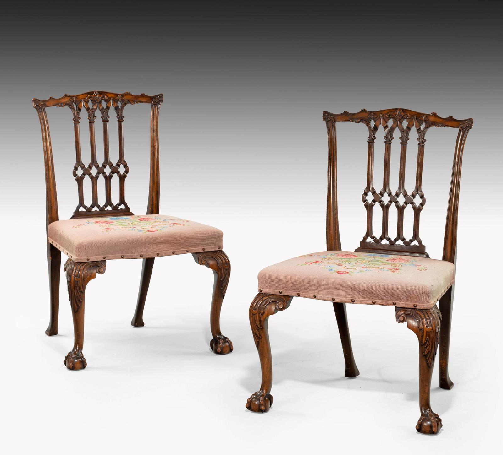 Pair of Late 19th Century Chippendale Design Mahogany Framed Chairs