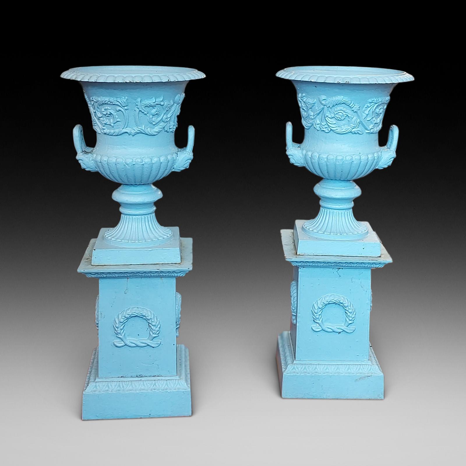 Pair of Late 19th Century / Early 20th Century Cast Iron Garden Urns