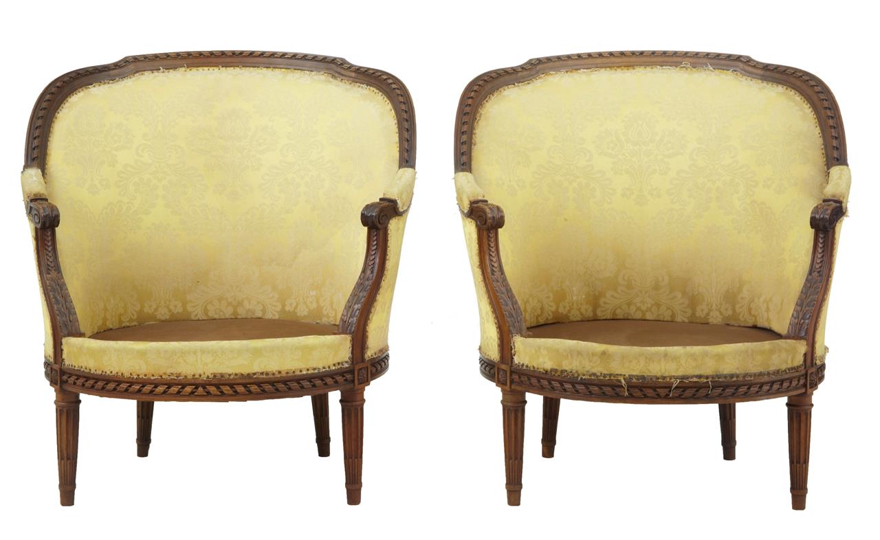 Pair of Late 19th Century French Walnut Lounge Chairs