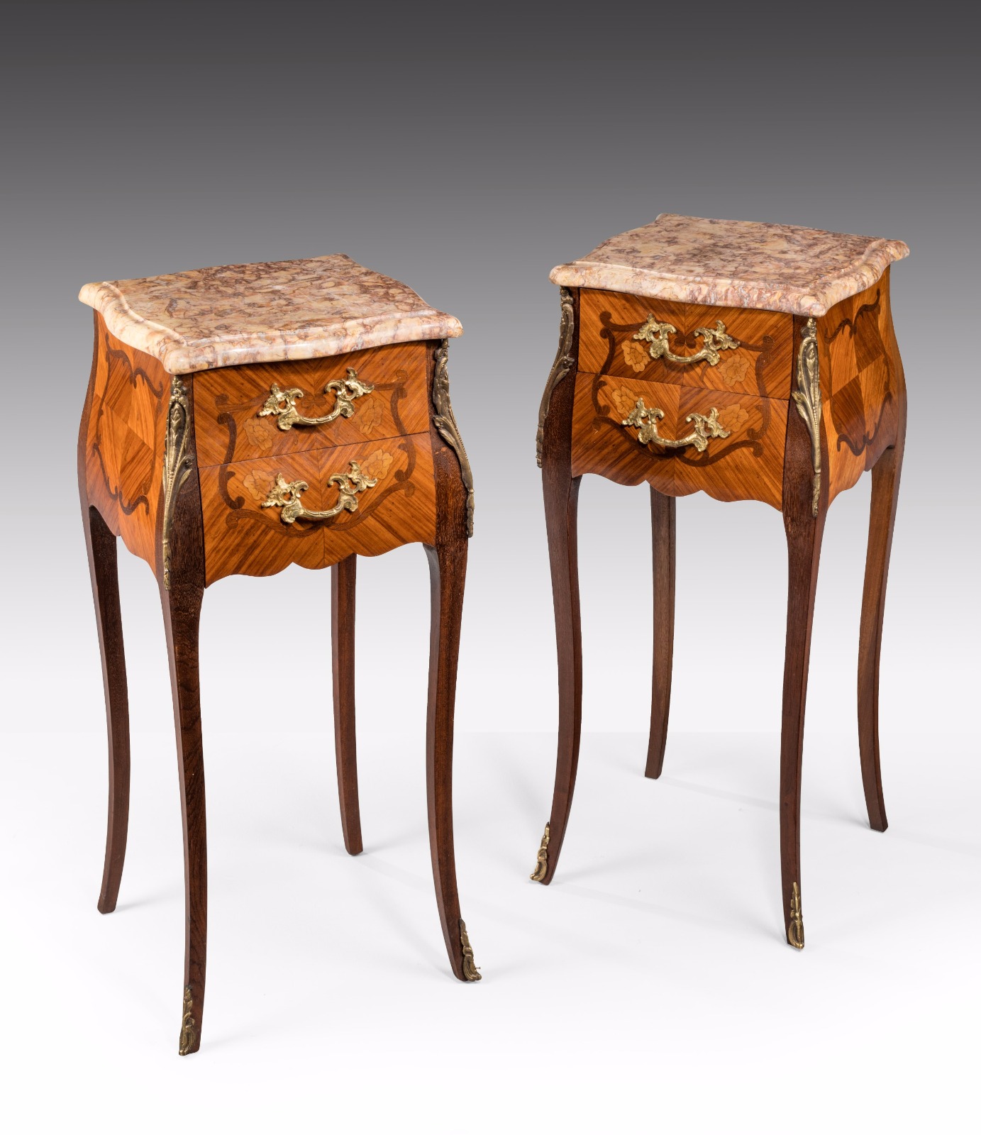 Pair of Late 19th Century Kingwood & Marquetry Petite Commodes