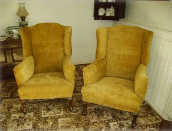 Pair of Late 19th Century Mahogany Framed Wing Armchairs