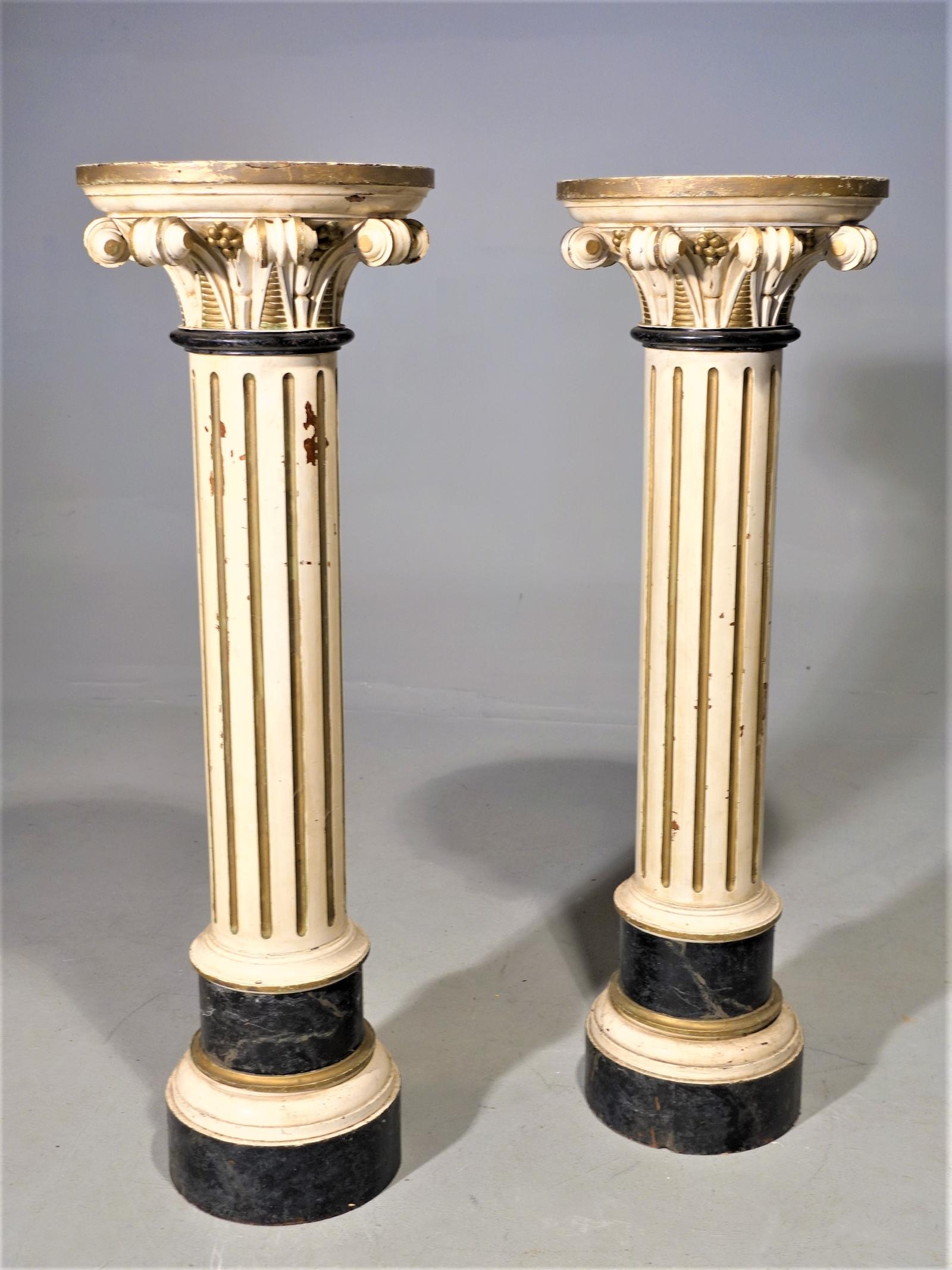 Pair of Late 19th Century Neoclassical Carved Pine Pillars