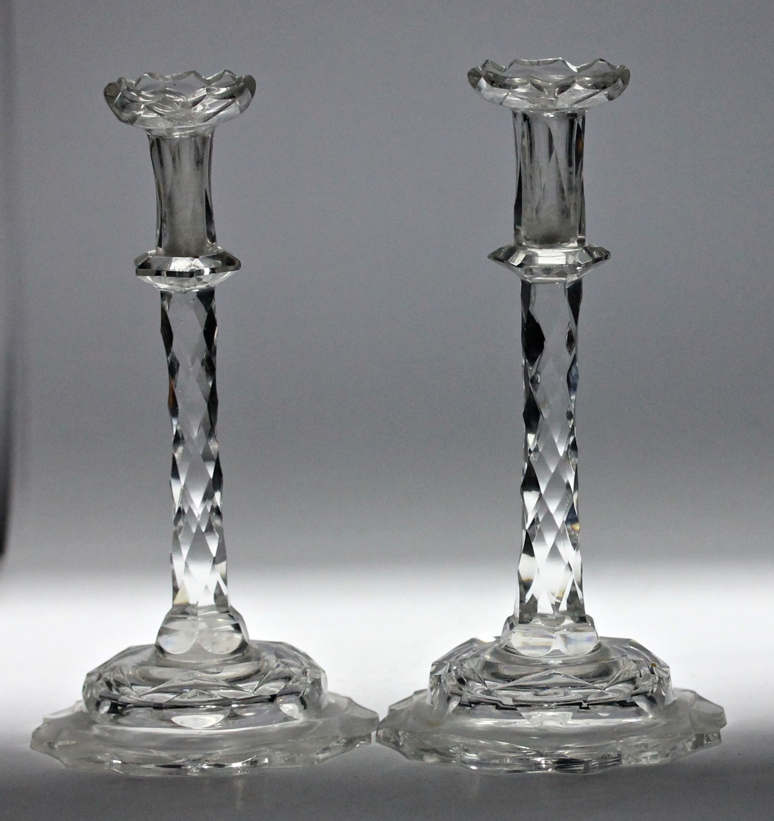 Pair of Late Georgian, Facet Cut Stem Glass Tapersticks