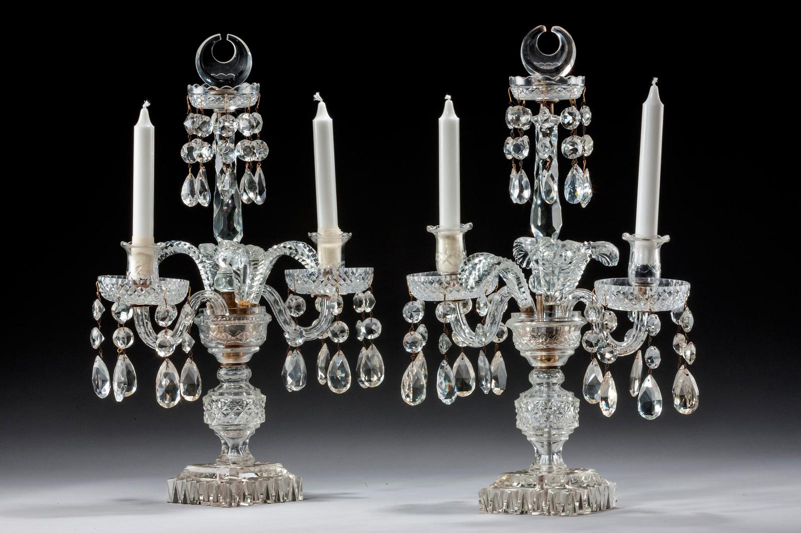 Pair of Late Regency Cut Glass Candelabra
