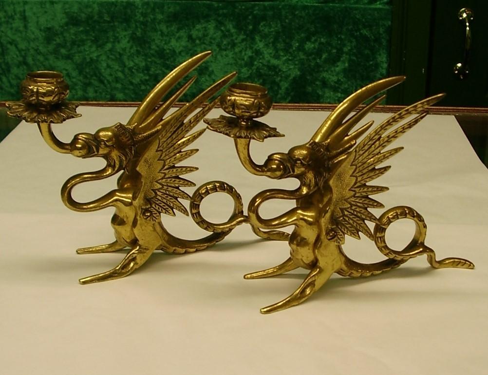 Pair of Late Victorian Brass Griffin Shaped Candlesticks