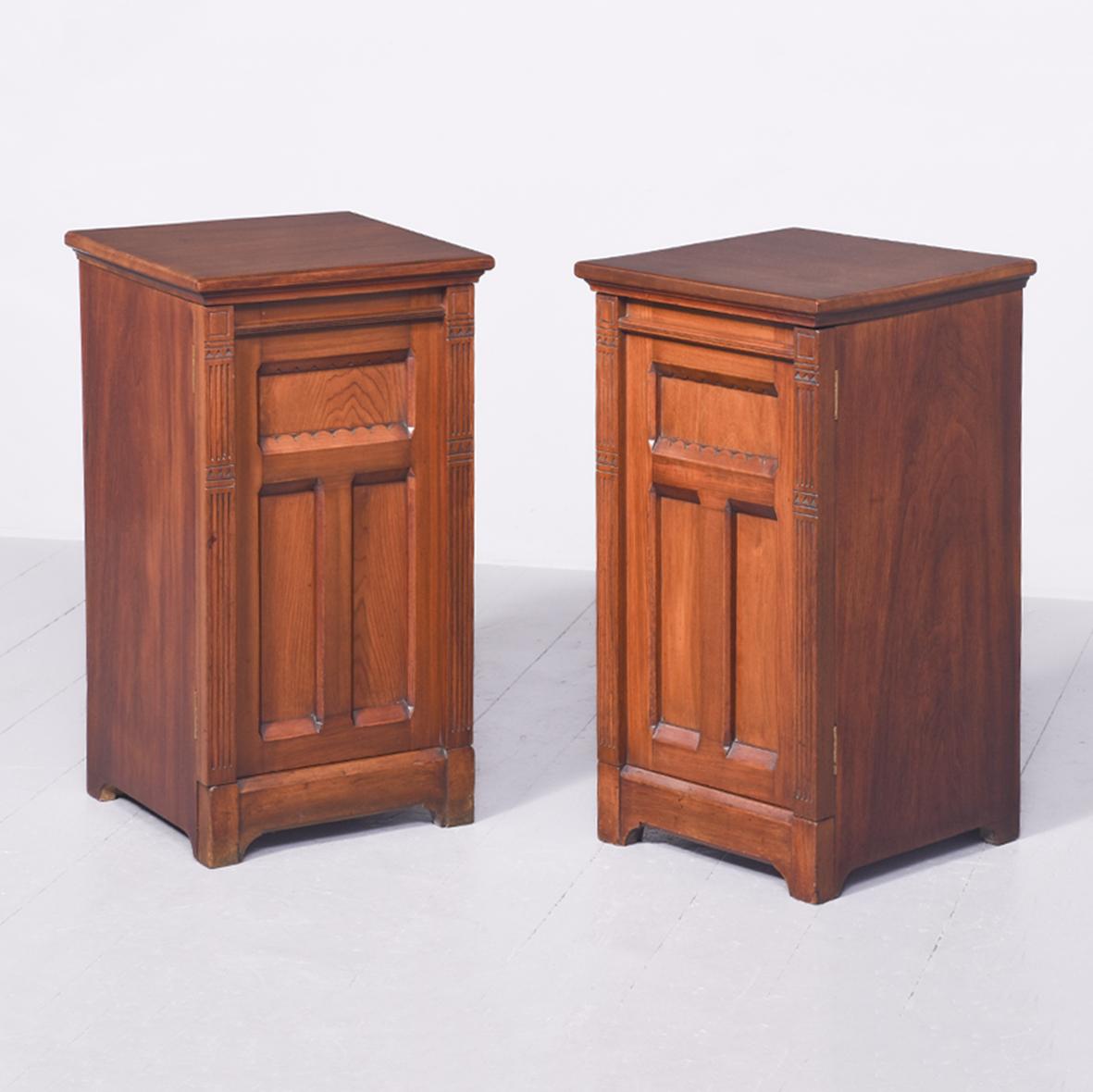 Pair of Late Victorian Gothic Influence Walnut Bedside Lockers