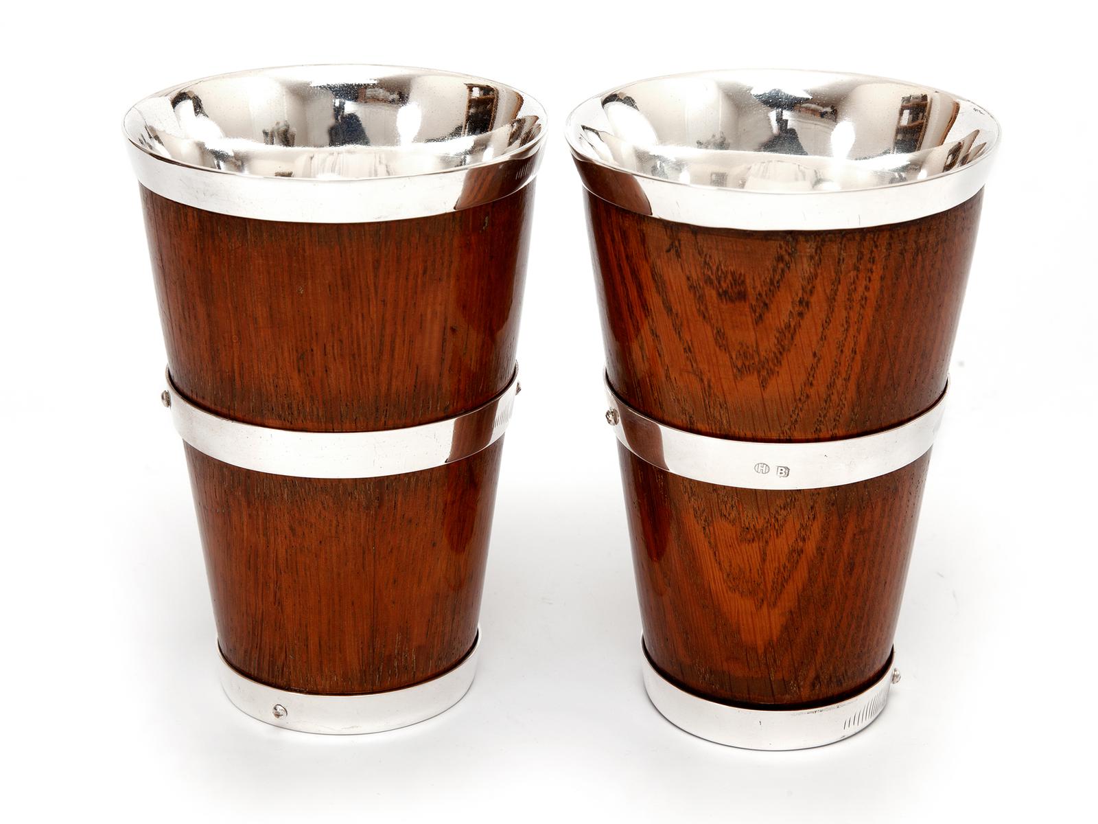Pair of Late Victorian Oak & Silver Plate Beakers (1 of 3)