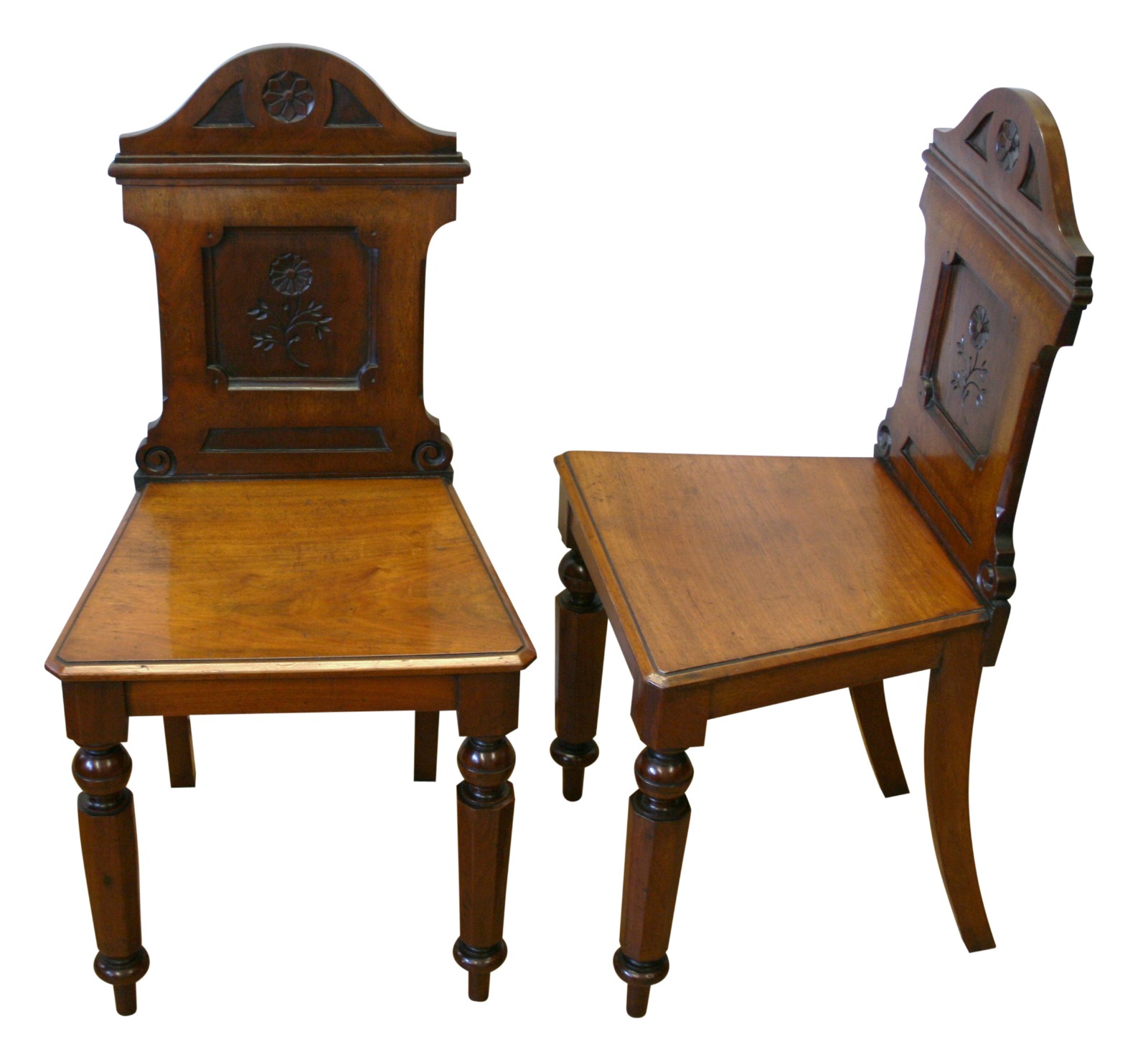 Pair of Late Victorian Virginia Walnut Hall Chairs