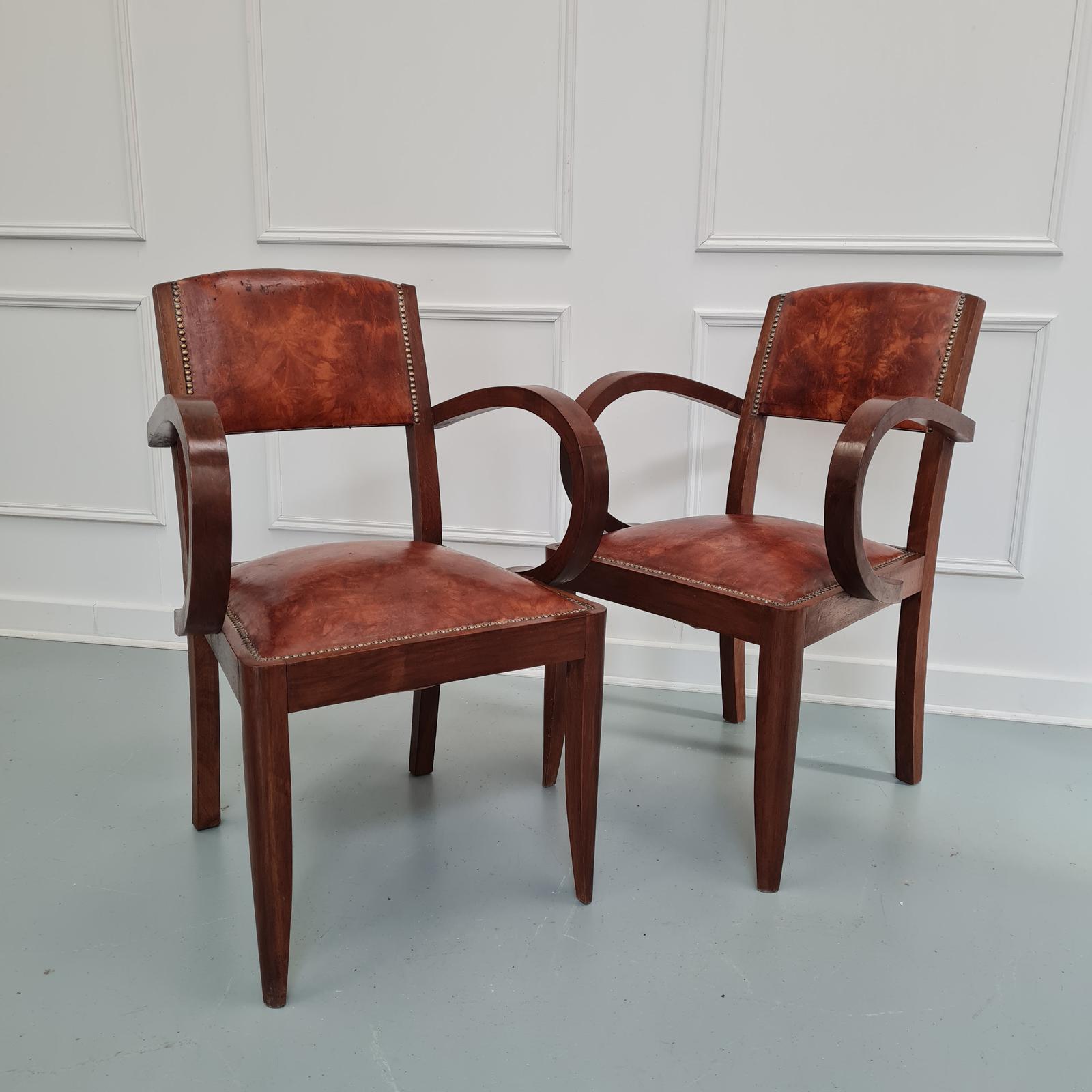 Pair of Leather Bridge Desk Chairs c.1930