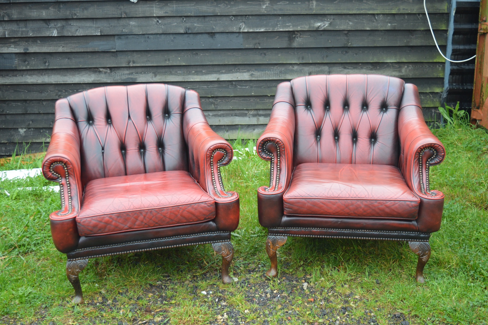 Pair of Leather Georgian Style Button Back Chesterfield Chairs