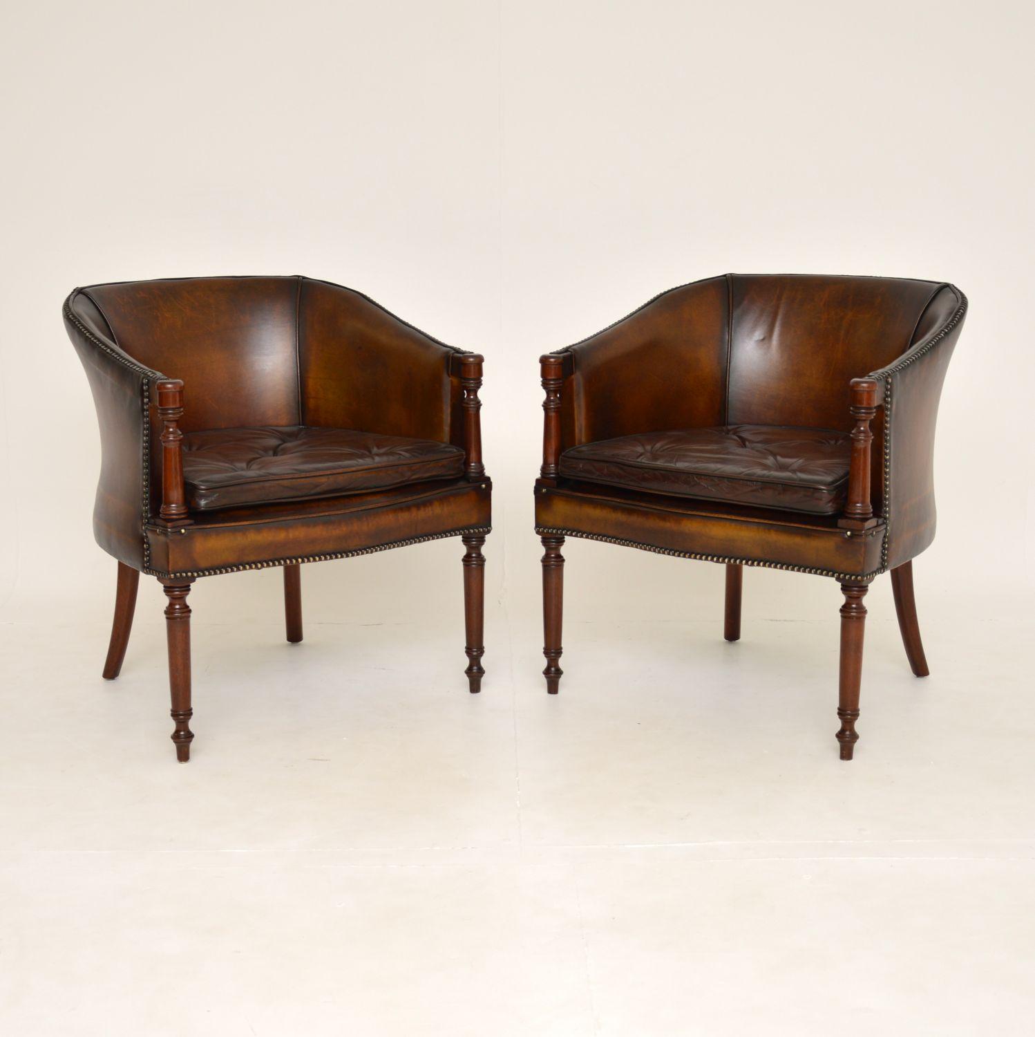 Pair of Leather & Mahogany Armchairs / Desk Chairs