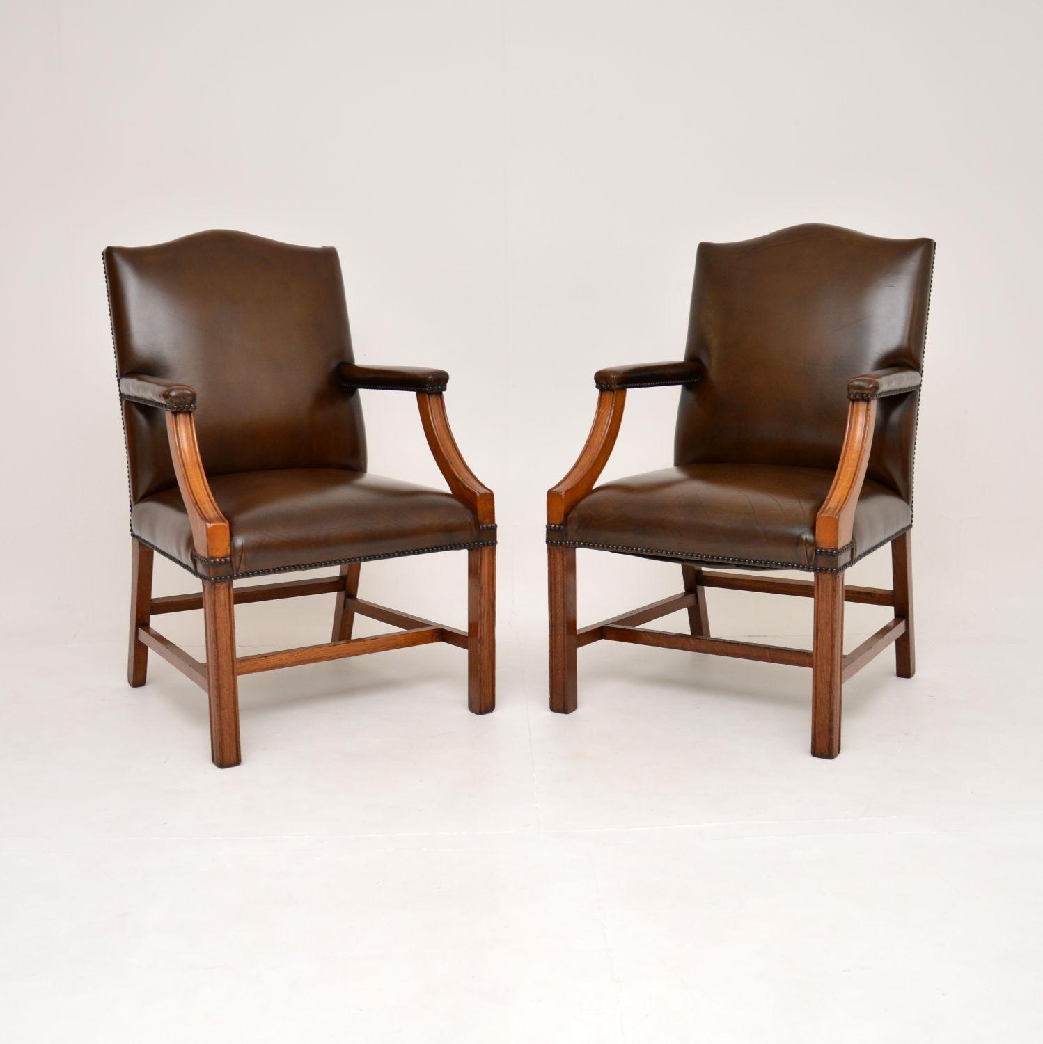 Pair of Leather & Mahogany Gainsborough Armchairs