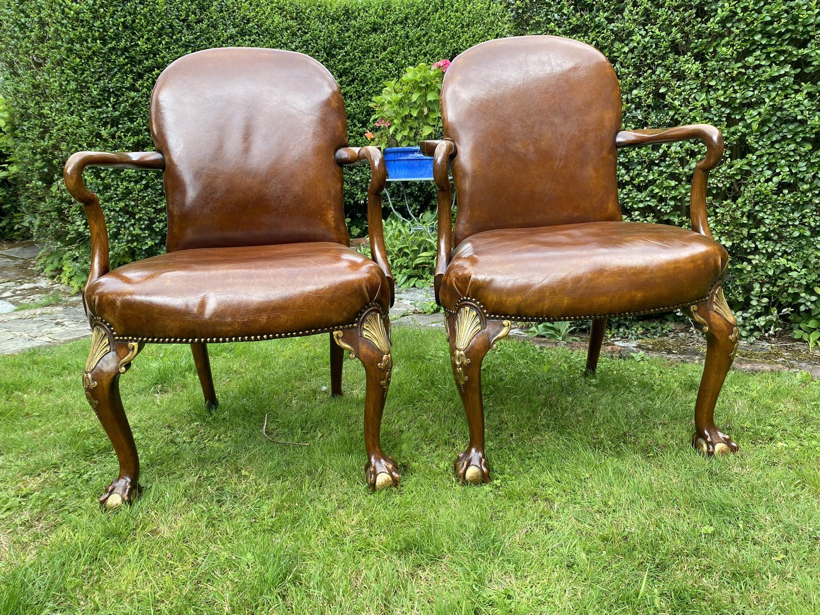 Pair of Leather Queen Anne Style Armchairs (1 of 10)