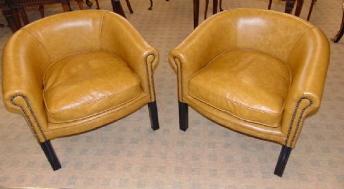 Pair of Leather Upholstered Tub Chairs