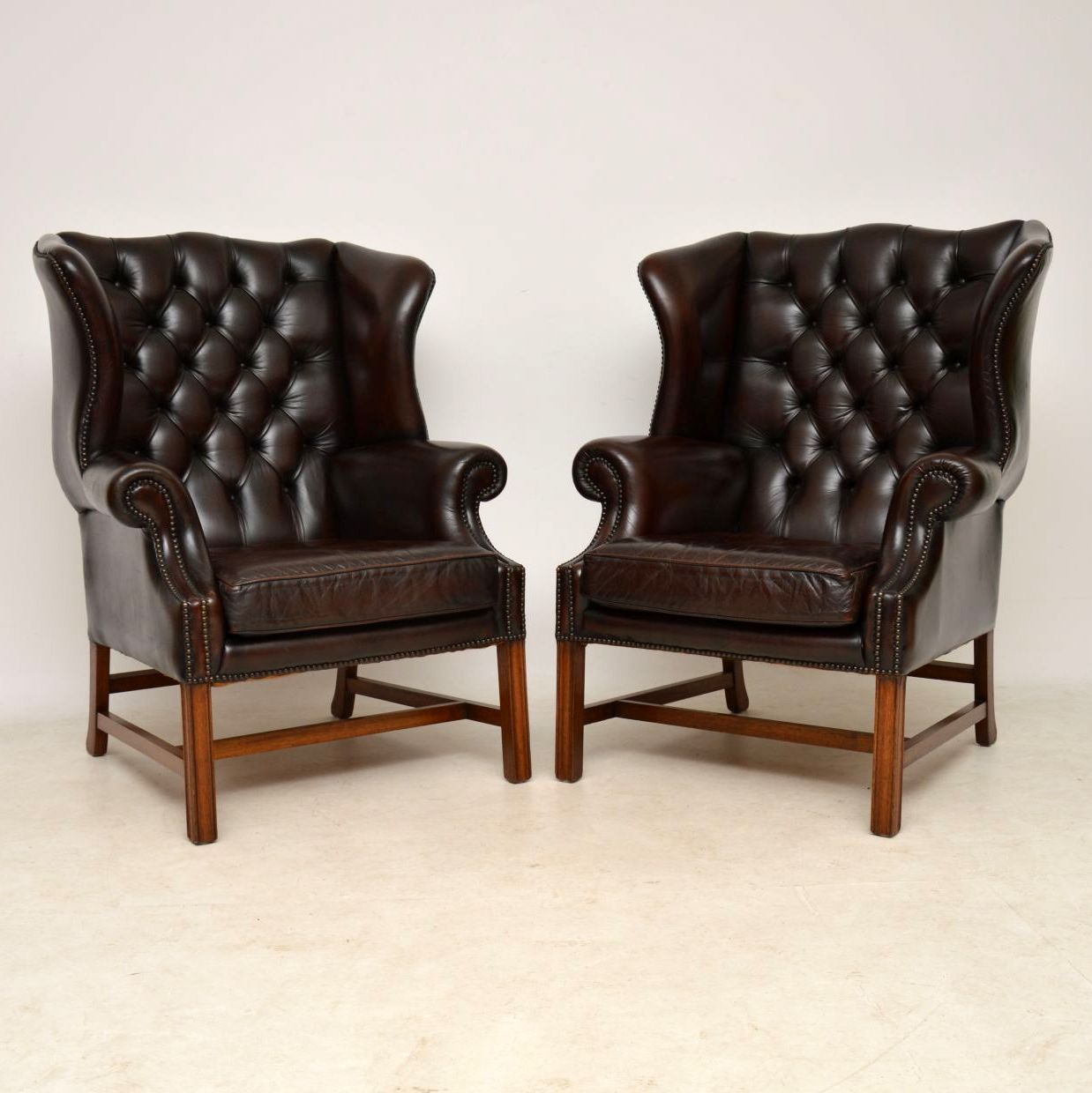 Pair of Leather Wing Back Armchairs (1 of 1)