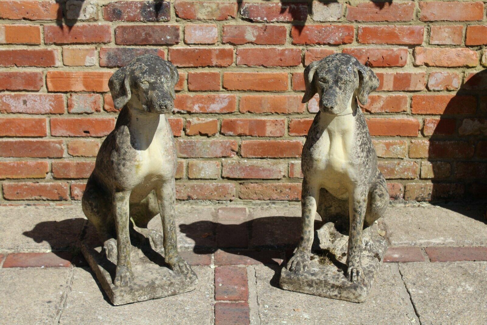 Pair of Life-Size Mid 20th Century Garden Weathered Composite Stone Dogs