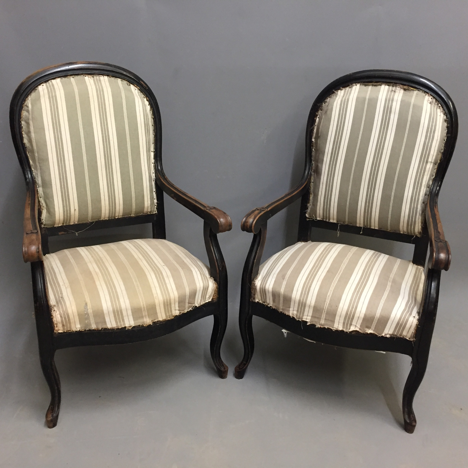 Pair of Louis Phillipe Ebonised Open Armchairs c.1880 (1 of 1)