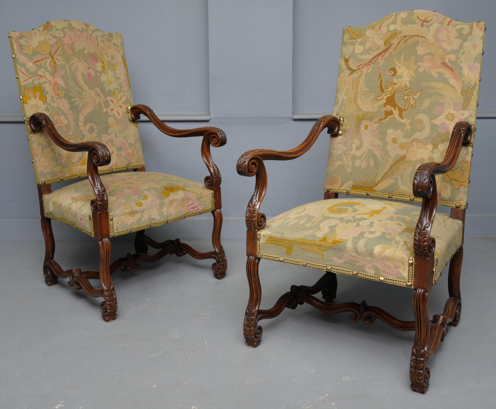 Pair Of Louis XIII Style Walnut Armchairs With Tapestry Upholstery