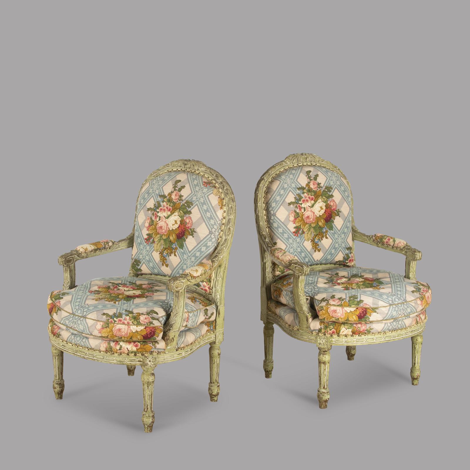 Pair of Louis XVI Style Green Painted Fauteuils (1 of 4)